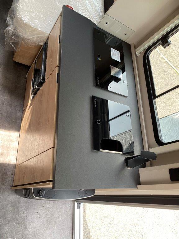 Platz und Stauraum im Überfluss bieten die Küchencenter im Camper®. Die neue Kocher-/Spülen-Anordnung schafft genügend Arbeitsfläche im vorderen Bereich. So macht Kochen auch im Urlaub Spaß.