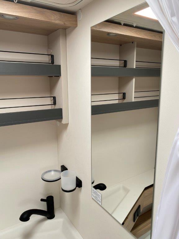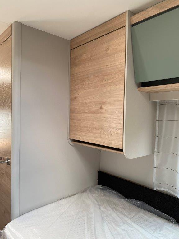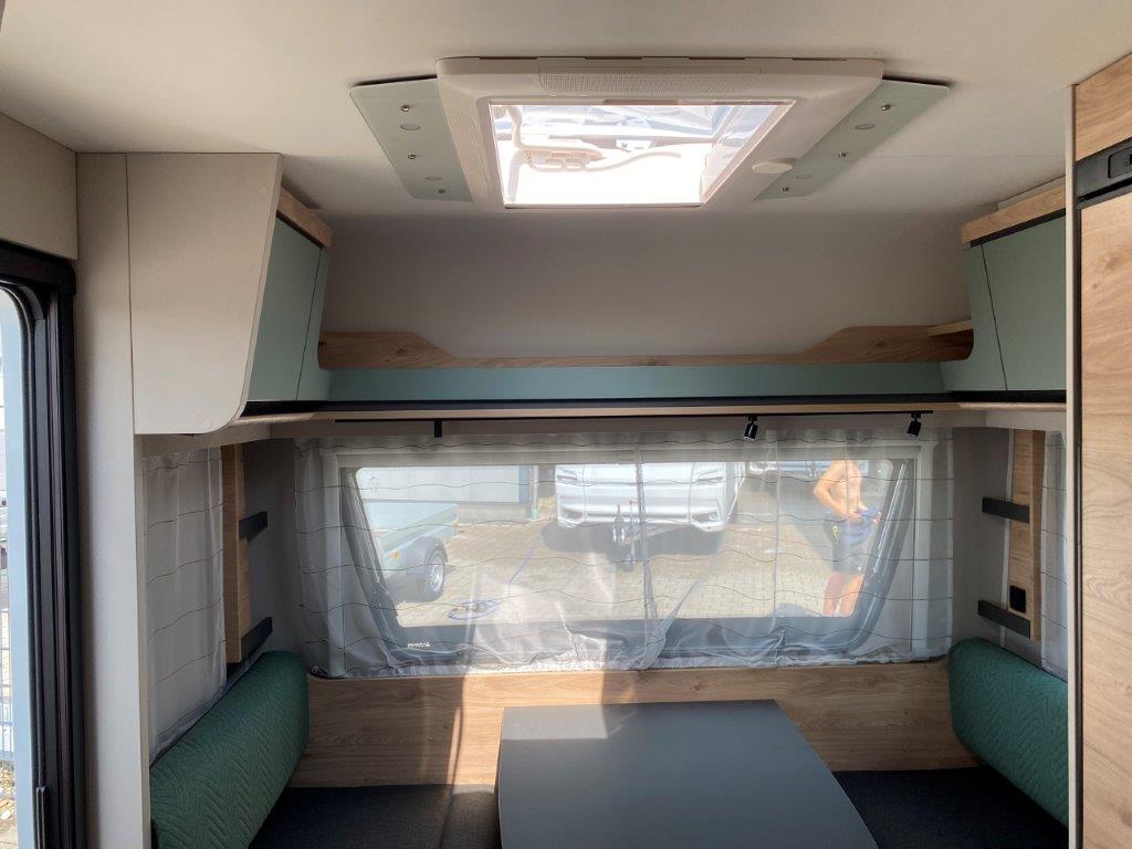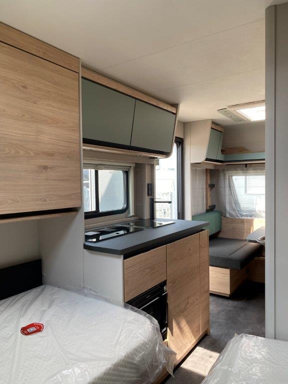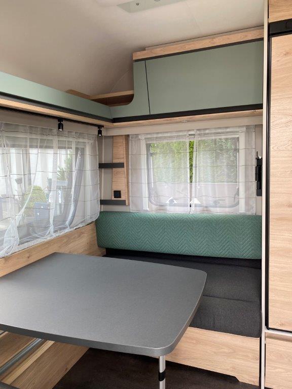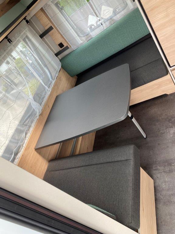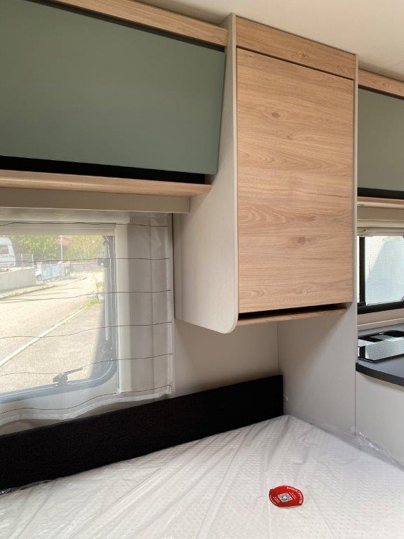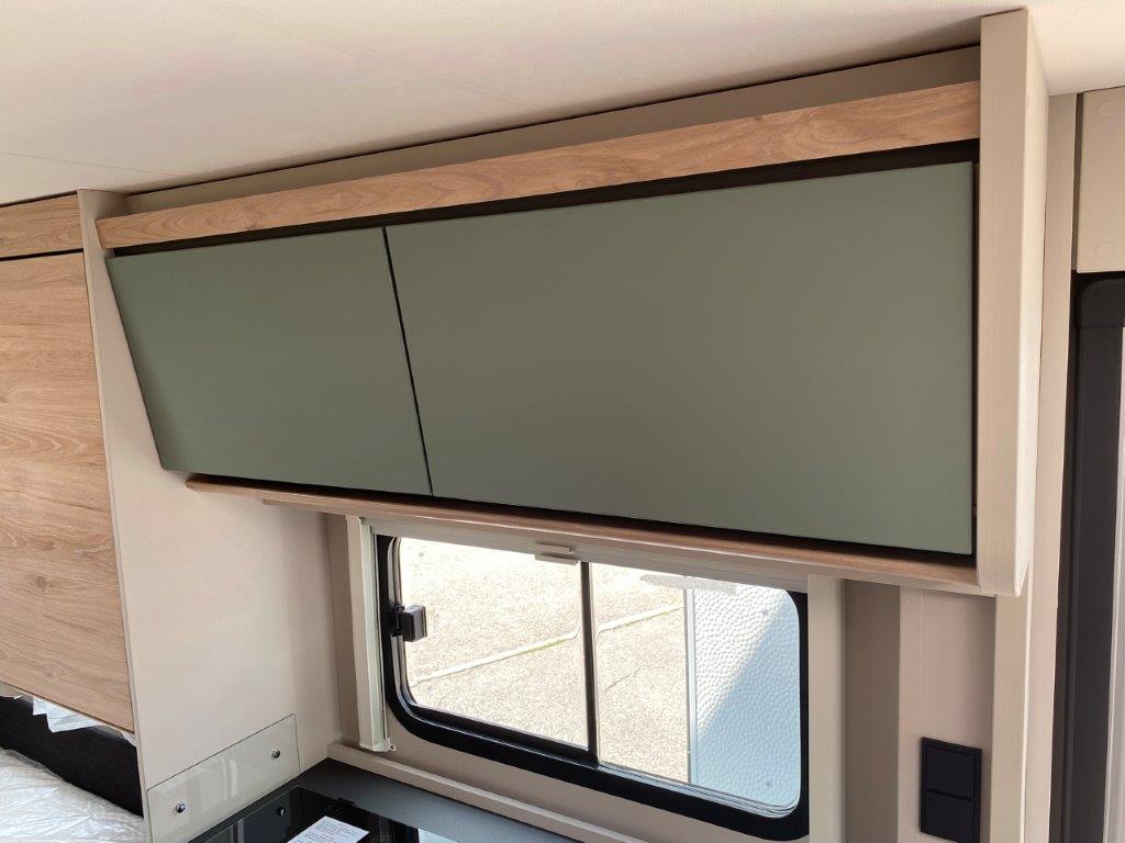 Der ideale Lebensraum für große und kleine Camper! Geradlinig und modern präsentiert sich das neu gestaltete Interieur des Camper®. Die schicke Kombination aus salbeigrünen Dachschrankklappen, beigen Flächen und einem modernen Holzton, erzeugt einen spannenden Kontrast zu den schwarzen Akzenten und belebt den Raum.