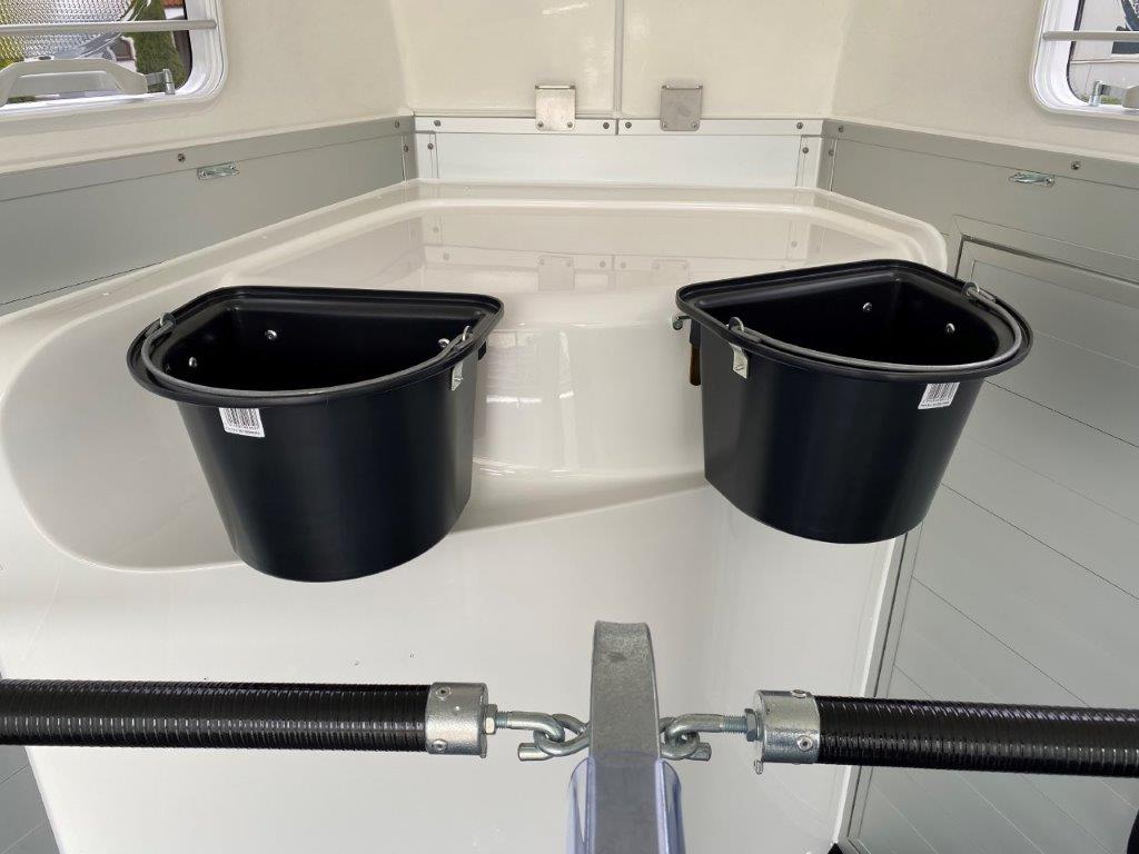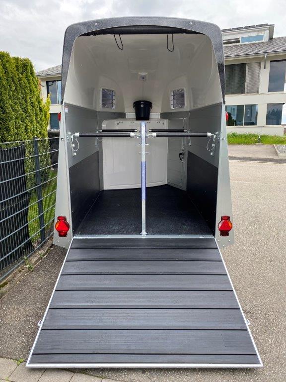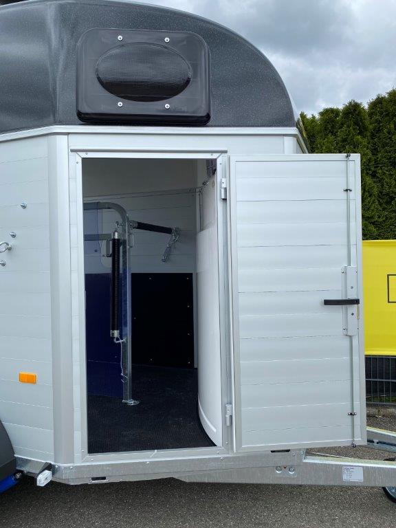Die Leichtgewichte unter den Einsteigermodellen: zwischen 773 und 887 Kilo bringen die EQUITOS Alu Modelle auf die Waage. Und das bei umfangreicher Serienausstattung wie die Humbaur EquiSpace® Ausstattung, die viel Bewegungsraum fürs Pferd verspricht. Zur Serienausstattung des EQUITOS Alu Plus gehört eine abschließbare Sattelkammer mit Sattelhalter, Trensenhalter, Spiegel und Netz.