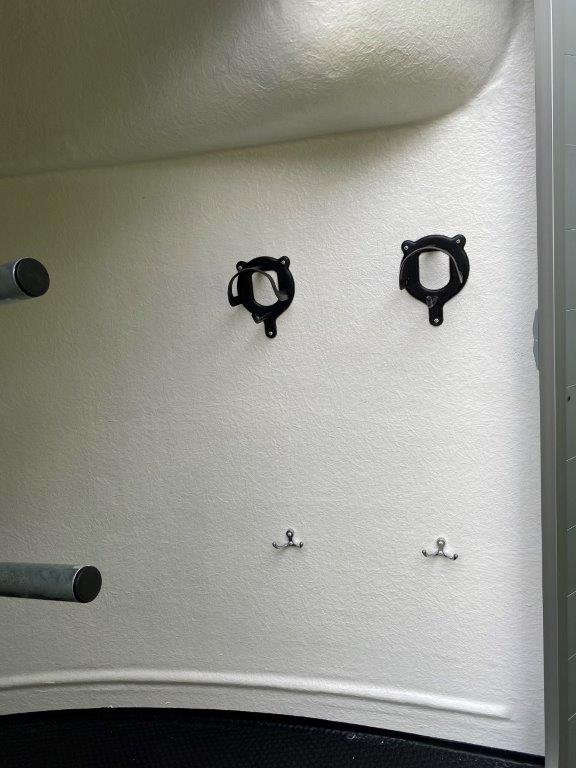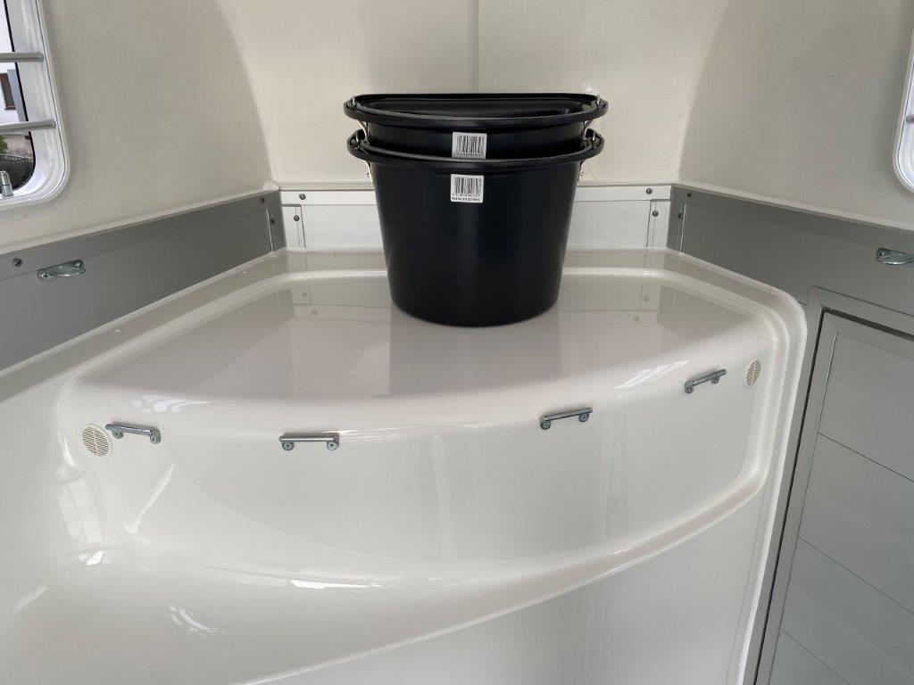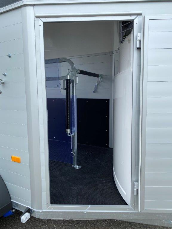 • abschließbare Sattelkammer mit Sattelhalter, Trensenhalter, Spiegel, Netz