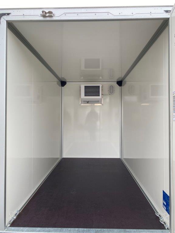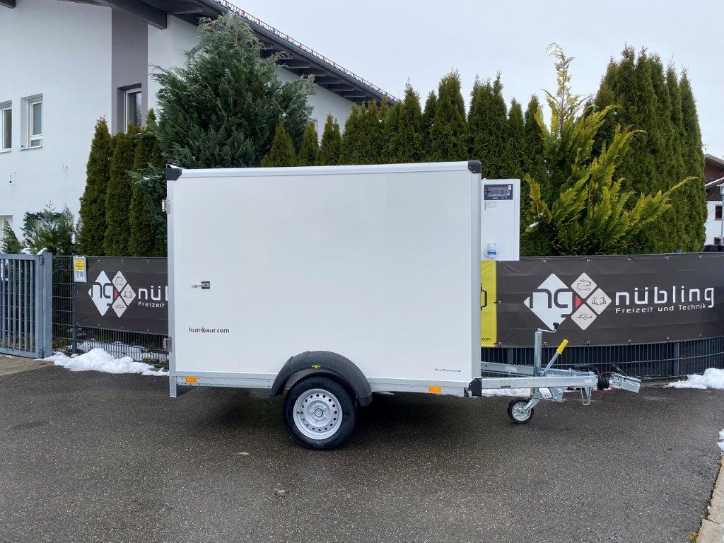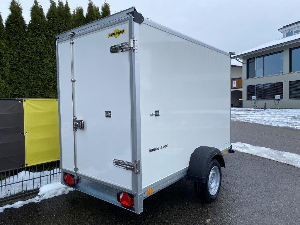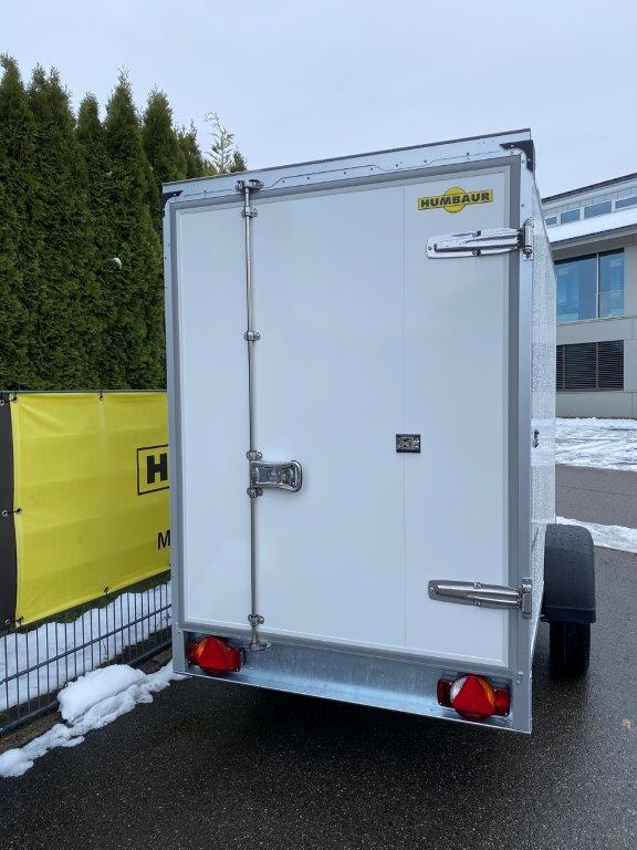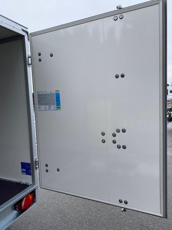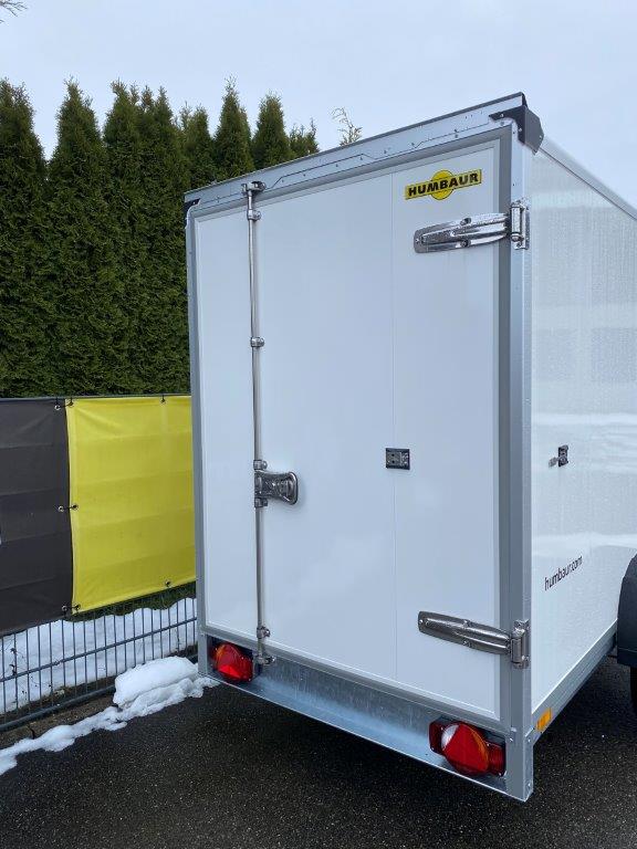 Der Einachs-Sandwichkoffer für den gekühlten Transport Ihrer Ware. Der Rahmen und das Fahrwerk sind aus feuerverzinktem Stahl gefertigt und verleihen dem Sandwichkoffer eine lange Lebensdauer. Der Boden der Sandwich-Koffer besteht aus mehrfach wasserfest verleimtem Spezialholz mit rutschhemmender Phenolharzbeschichtung. Der Aufbau besteht bei diesem Koffer aus einer 30 mm starken Sandwichpaneele mit einem Kern aus geschäumten Polyurethan mit einer beidseitigen Deckschicht aus verzinktem und polyesterlackbeschichtetem Stahlblech. Die Einfassungen des Sandwichkoffers sind aus eloxiertem Aluminium, ebenso wie das verwindungssteife Heckportal und die Regenrinne am Heck. Die Türscharniere, der abschließbare Drehstangenverschluss und die Türfeststeller sind aus Edelstahl gearbeitet. An den Türen sind Dichtungen aus Kunststoff montiert, die ein wassergeschütztes transportieren Ihrer Ware ermöglichen. Der Einachs-Sandwichkoffer von Humbaur ein unerlässlicher Helfer für den geschützten gekühlten Transport.