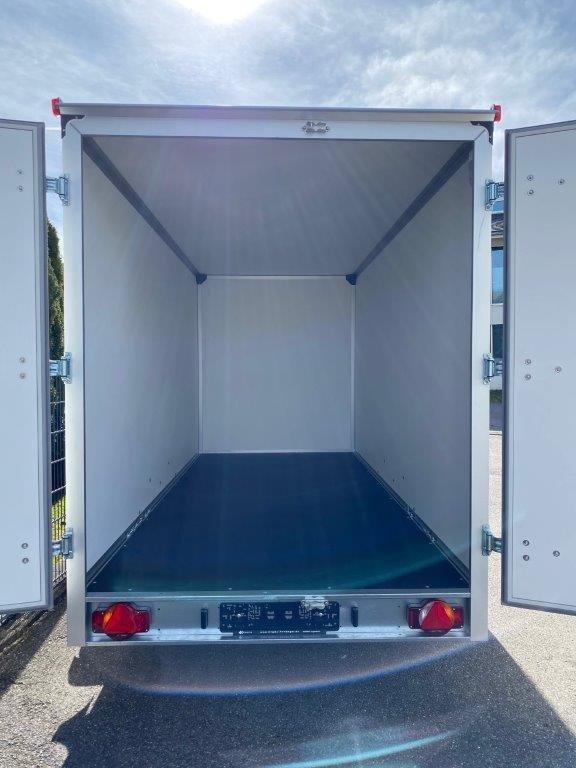 Der Tandem-Plywoodkoffer überzeugt mit seinen durchdachten Detaillösungen und seiner vielseitigen Einsatzmöglichkeiten. Der Rahmen und das Fahrwerk sind aus feuerverzinktem Stahl gefertigt und verleihen der Plywood-Koffer-Serie eine lange Lebensdauer. Der Aufbau wird kpl. aus 15 mm Mehrschichtholz mit Spezial-Kunststoffbeschichtung gefertigt, der auf Wunsch gegen Aufpreis gerne mit Ihrer Firmenwerbung beklebt werden kann. Im Innenraum ist für eine bessere Sicht eine Leuchte montiert. Alle Plywood-Koffer sind mit Scharnieren und einem abschließbaren Drehstangenverschluss aus verzinktem Stahl ausgestattet. An den Türen sind Dichtungen aus Kunststoff montiert, die ein wassergeschütztes transportieren Ihrer Ware ermöglichen. Die Aluminiumverstärkungen im Dachbereich und an der Stirnwand unten verleihen den Plywood-Koffern von Humbaur eine extreme Stabilität. Der Boden der Plywood-Koffer besteht aus mehrfach wasserfest verleimtem Spezialholz mit rutschhemmender Phenolharzbeschichtung und 15 mm Stärke. Das integrierte seitliche Zurrsystem ist in den eloxierten seitlichen Rahmenprofilen angebracht. Pro Zurring haben wir eine Zugkraft von 400 kg und das Dekra geprüft. Dieses System ist auf Wunsch noch erweiterbar und lässt dem Transporteur ausreichend Möglichkeit das Ladegut zu sichern. Einfassprofile, ein verwindungssteifes Heckportal und Regenrinnen sind aus eloxiertem Aluminum und bieten ein Höchstmaß an Schutz vor Korrosion. Der Tandem-Plywood-Koffer von Humbaur, der ideale Partner für den Transport Ihrer Güter.