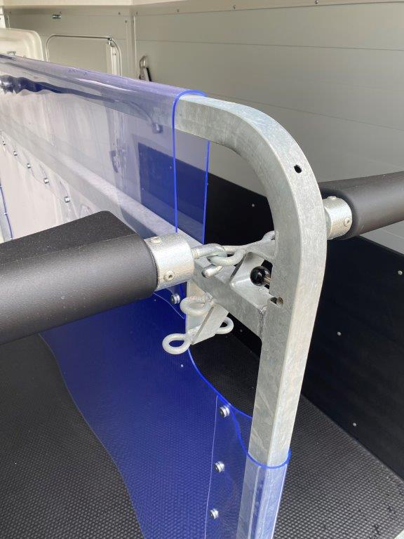 Geteilte und gepolsterte Brust- und Heckstangen, höhen- und längsverstellbar, mit EquiGuard® Panikentriegelung